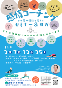 持ち物:飲み物、動きやすい服装、タオルその他:靴下の着用をお願い致します。